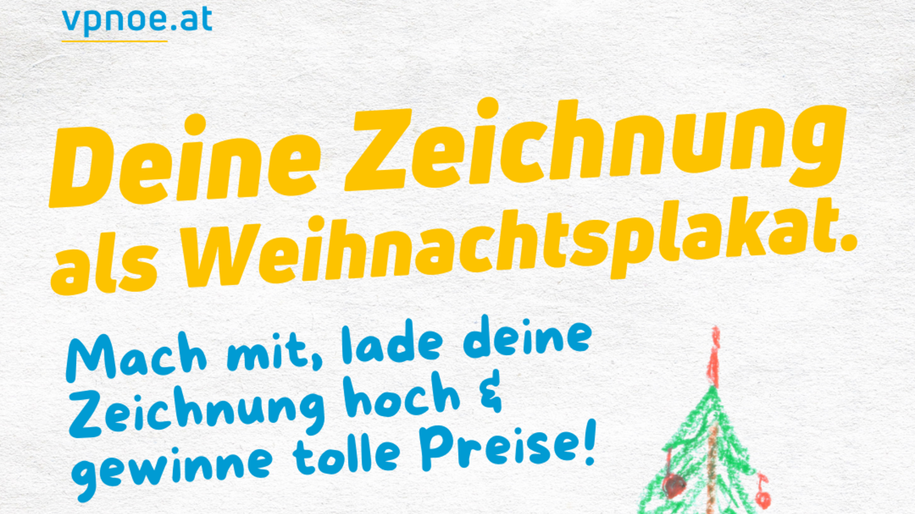 Mach mit – und vielleicht hängt die Zeichnung bald in ganz Niederösterreich. Schaukastenplakat Weihnachten